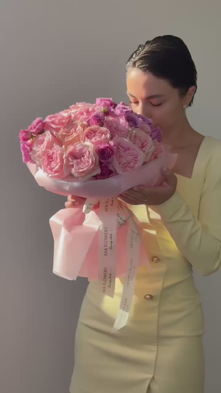 A fragrant blend of lush pink garden roses and vibrant spray blooms, wrapped in delicate blush tones. Rose & Berry embodies the essence of modern romance — bright, joyful, and full of life.